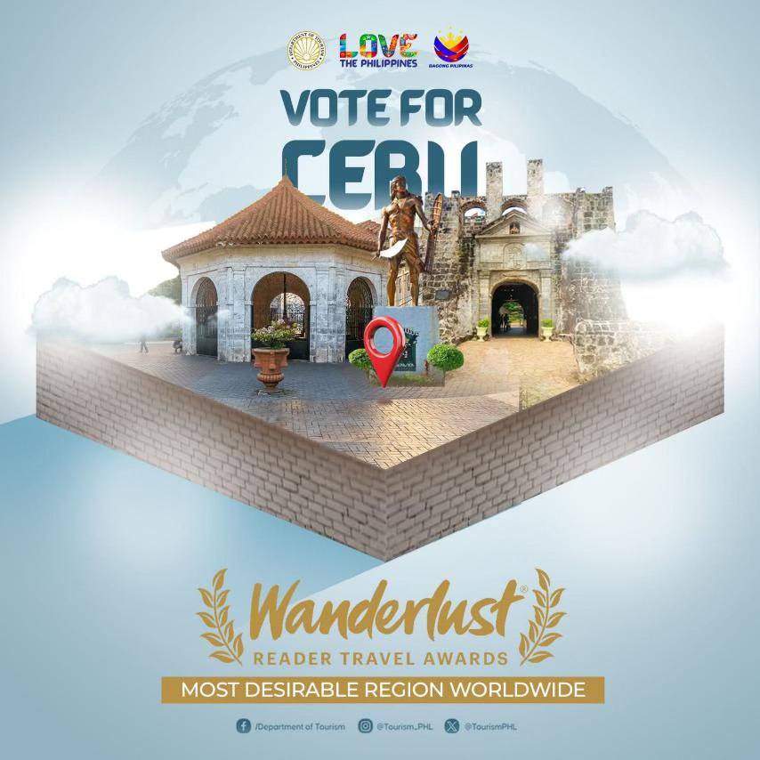 The Department of Tourism (DOT) proudly announces that Cebu has been nominated as “Most Desirable Region (Worldwide)” at the prestigious 24th Wanderlust Reader Travel Awards, hosted by Wanderlust Magazine—the United Kingdom’s longest-running and largest travel publication.