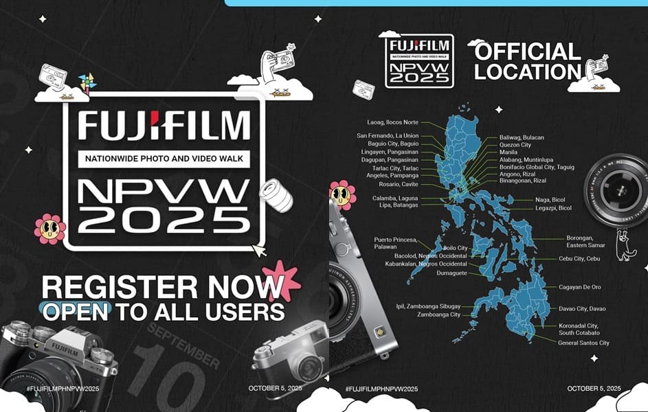 FUJIFILM Philippines proudly announces the launch of the Nationwide Photo and Video Walk 2025 (NPVW 2025)—its biggest and most anticipated event of the year—happening on October 5, 2025, across 32 cities from Luzon to Mindanao.